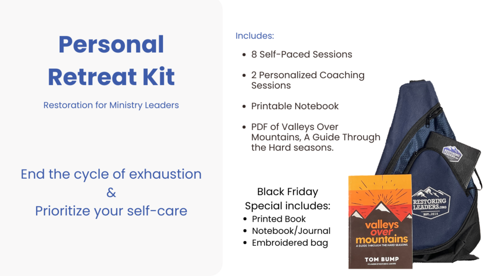 This Black Friday, transform your life with the exclusive "Lead Renewed Personal Retreat Kit" designed for ministry leaders overwhelmed by the relentless demands of their calling. Regain control, replenish your spirit, and bounce back stronger.